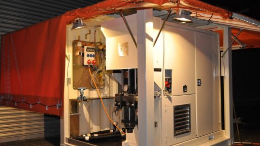 entsprechende Pumpentechnik, mit einem Volumenstrom von 0 – 200 L/min und mit
